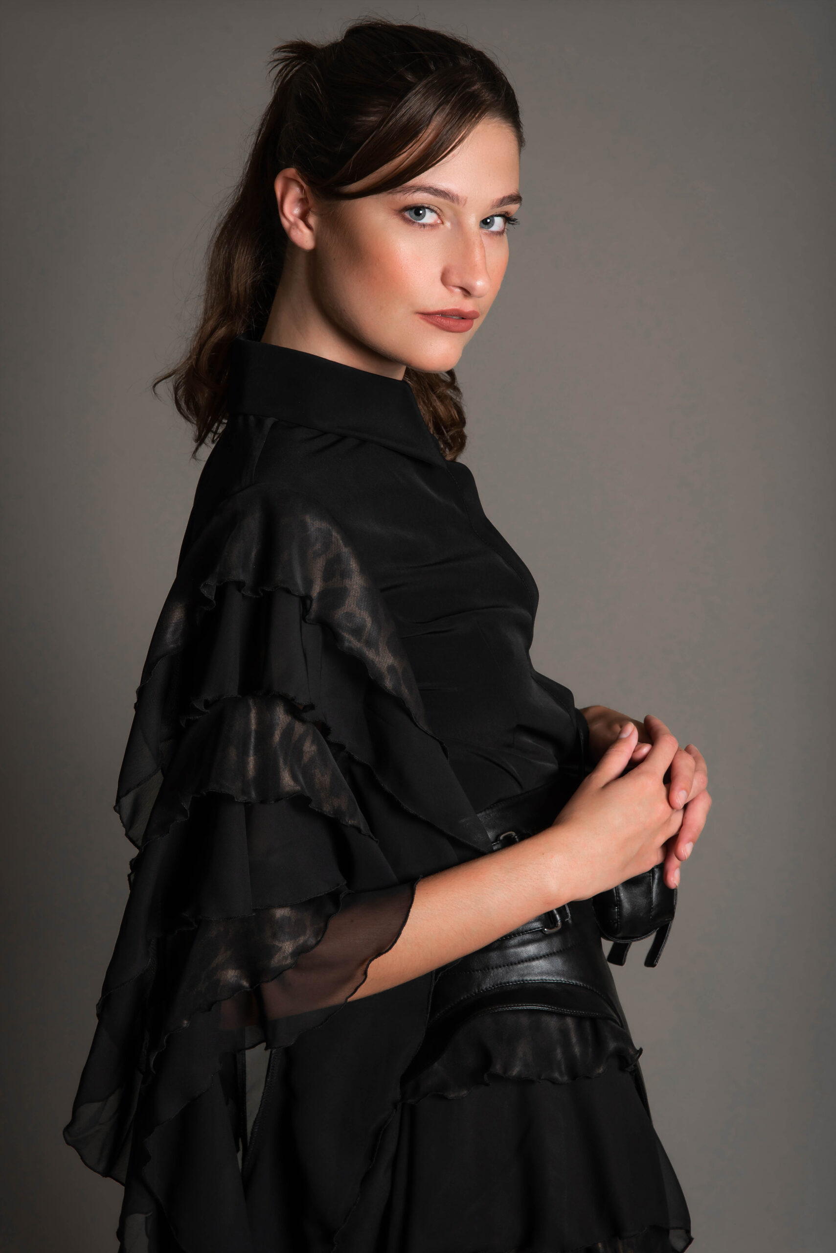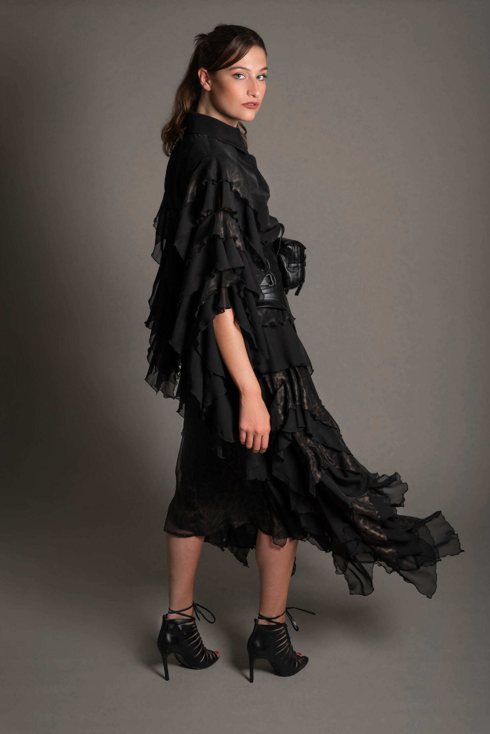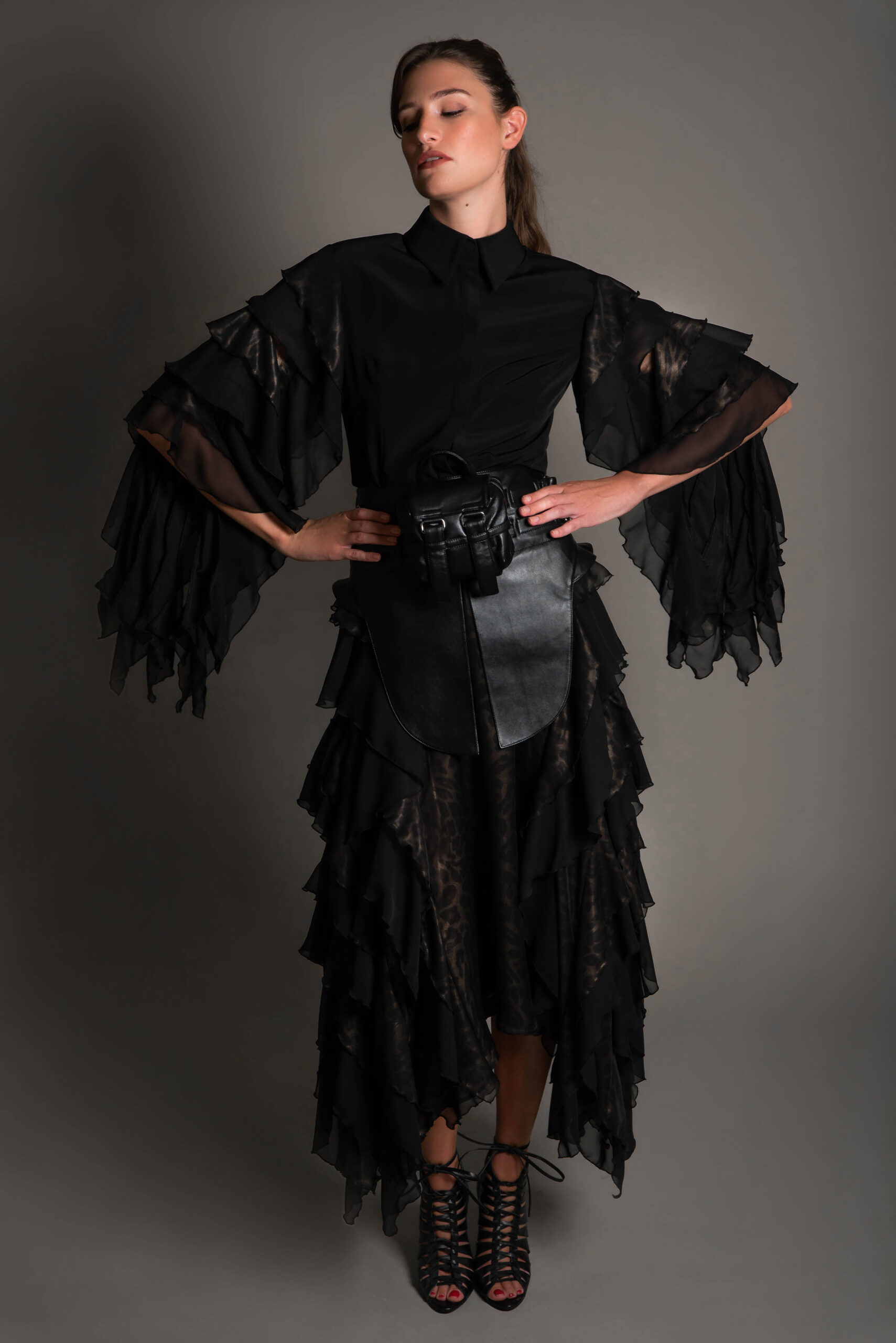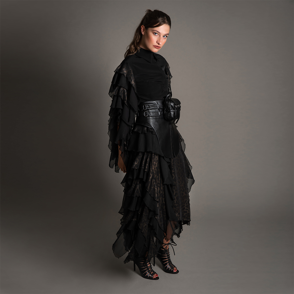 fabric type: Chiffon Crepe & Leather.