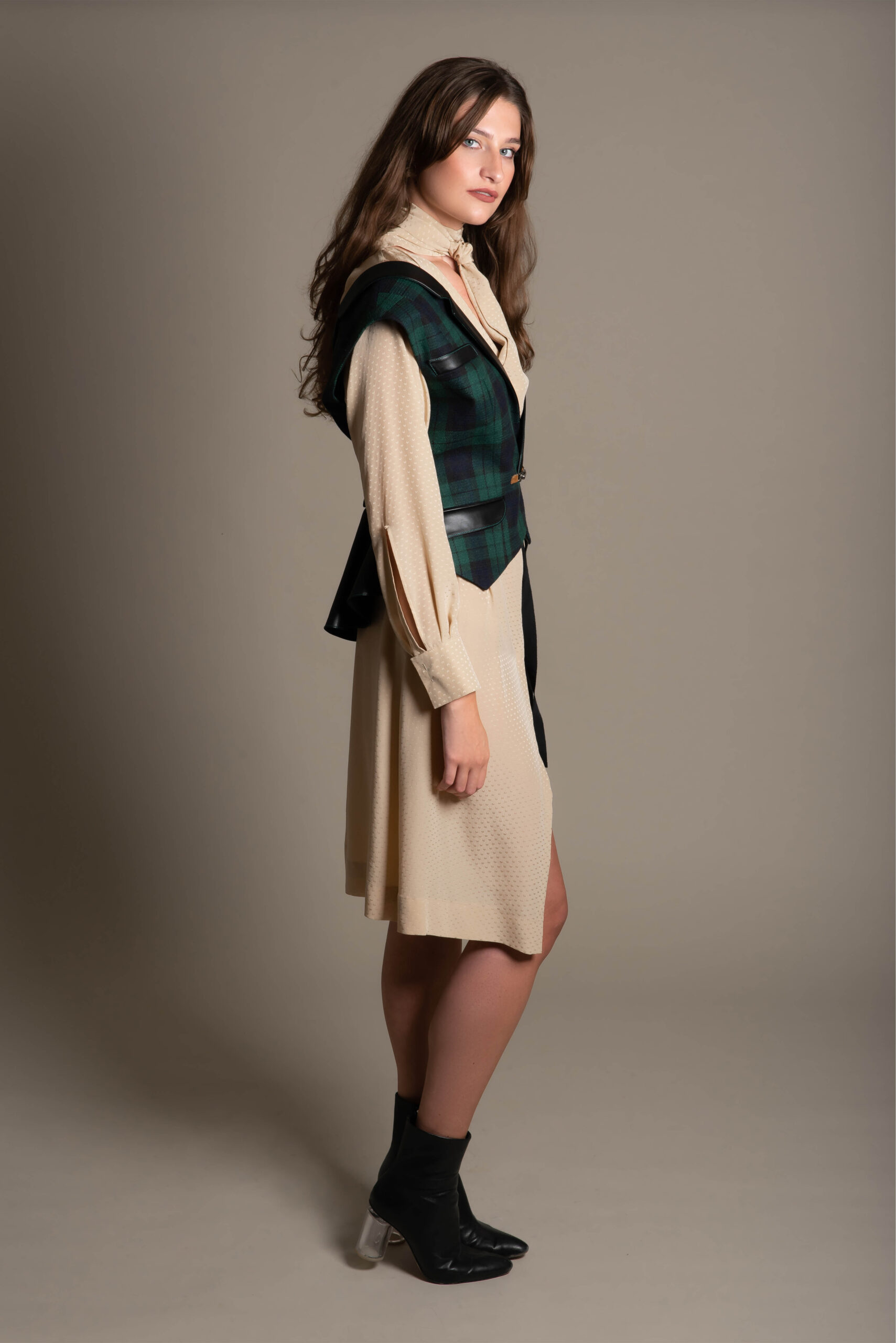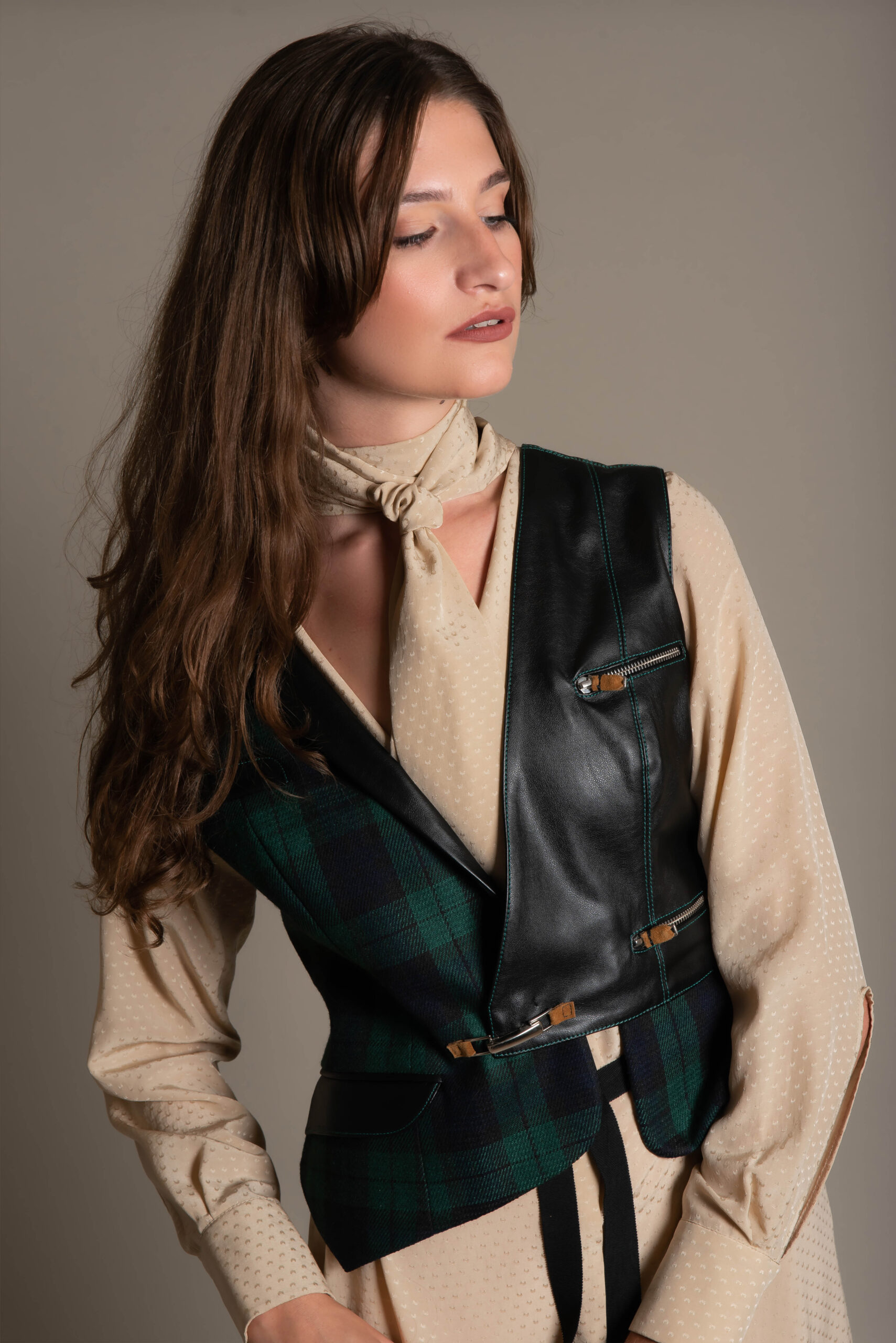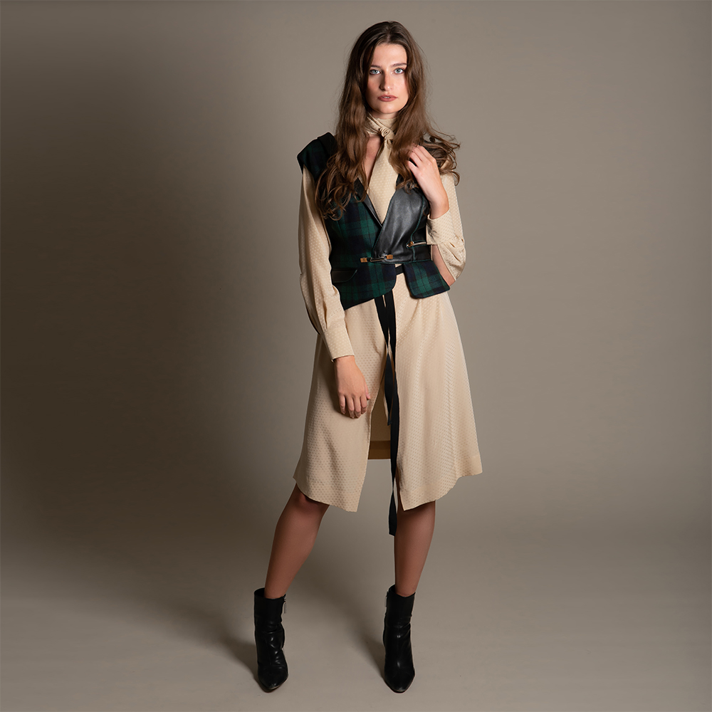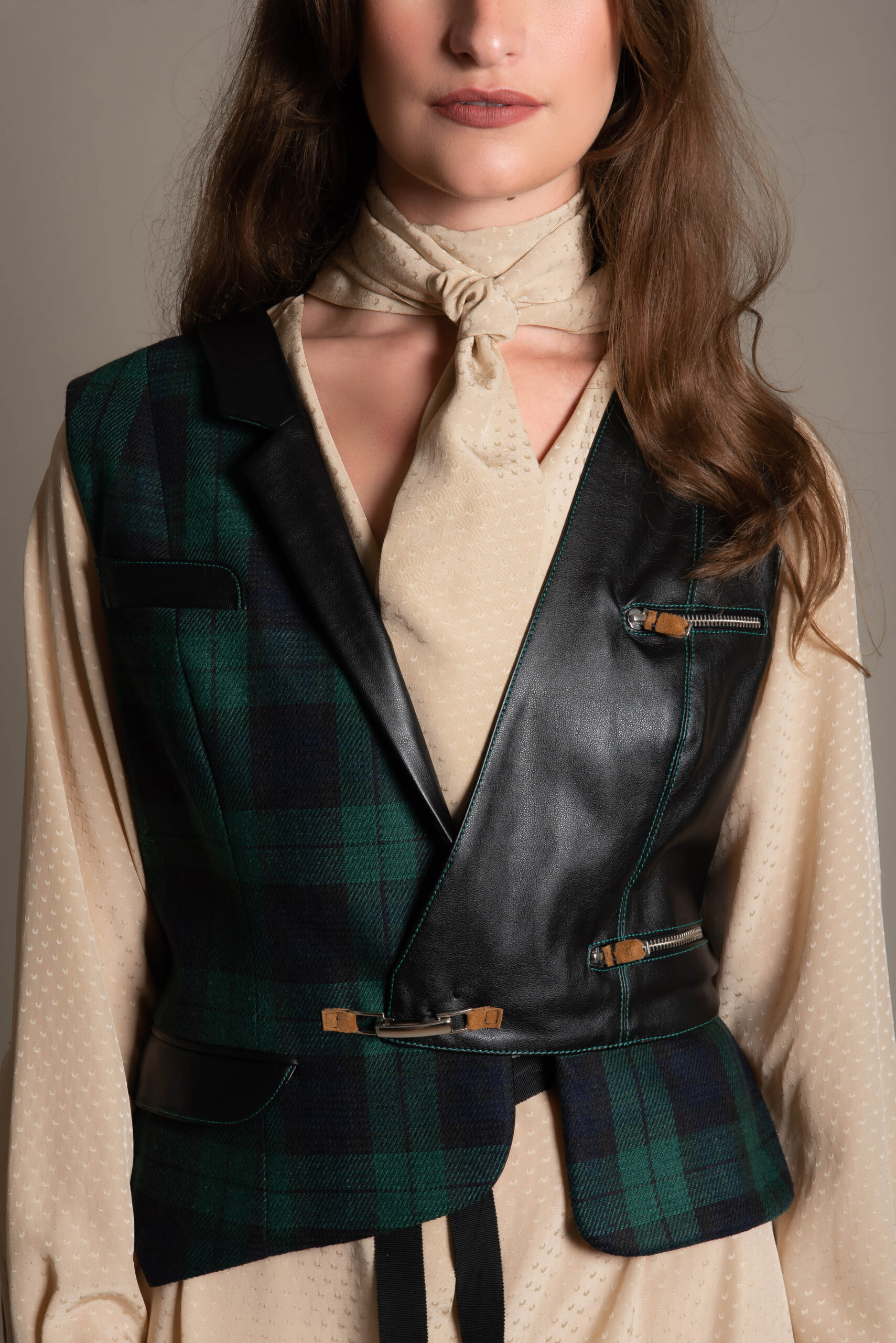fabric type: Polka Dot Jacquard, Leather & wool.